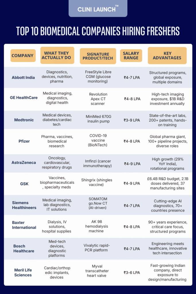 With the rapid growth of India’s biomedical and med-tech industries, there has never been a better time for freshers to enter the field. Thousands of companies across the country are actively hiring new talent, creating ample job opportunities in research, development, manufacturing, and clinical roles.